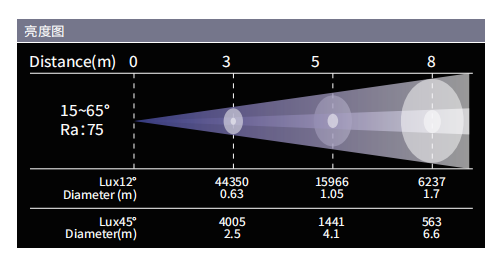 | 光学角度 | 15°~65°(线性变焦) | |