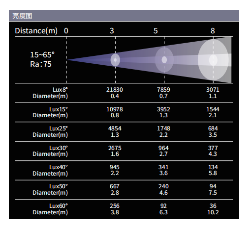 | 光学角度 | 8°/15°/25°/30°/40°/50°/65° (定焦镜头可选) | |